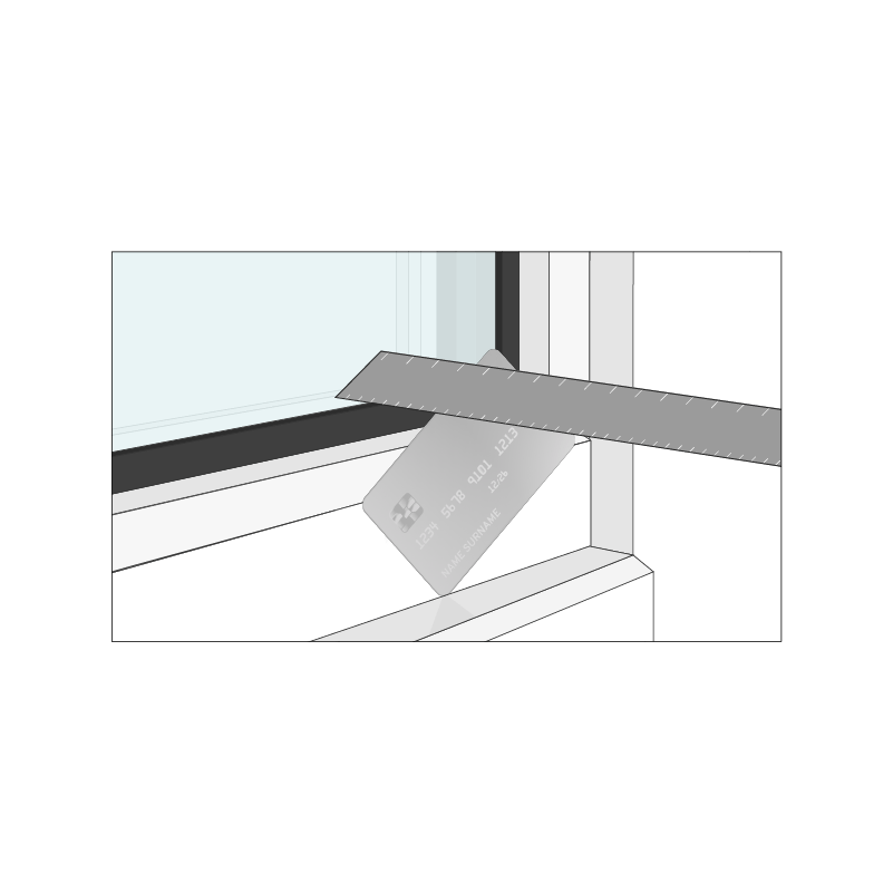 Insert a credit card 1cm between rubber bead and glass. Perfect Fit blinds term, highlighting snug fit with rubber gasket, accommodating obstructions in window frames.